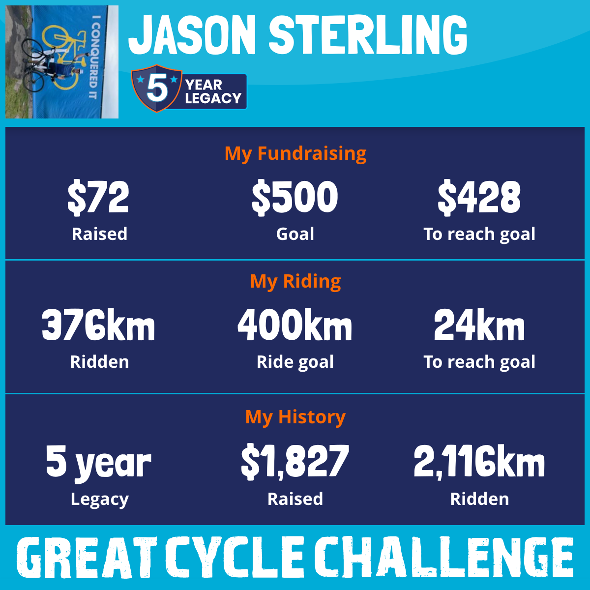 376 km Ridden$72 Raised2026