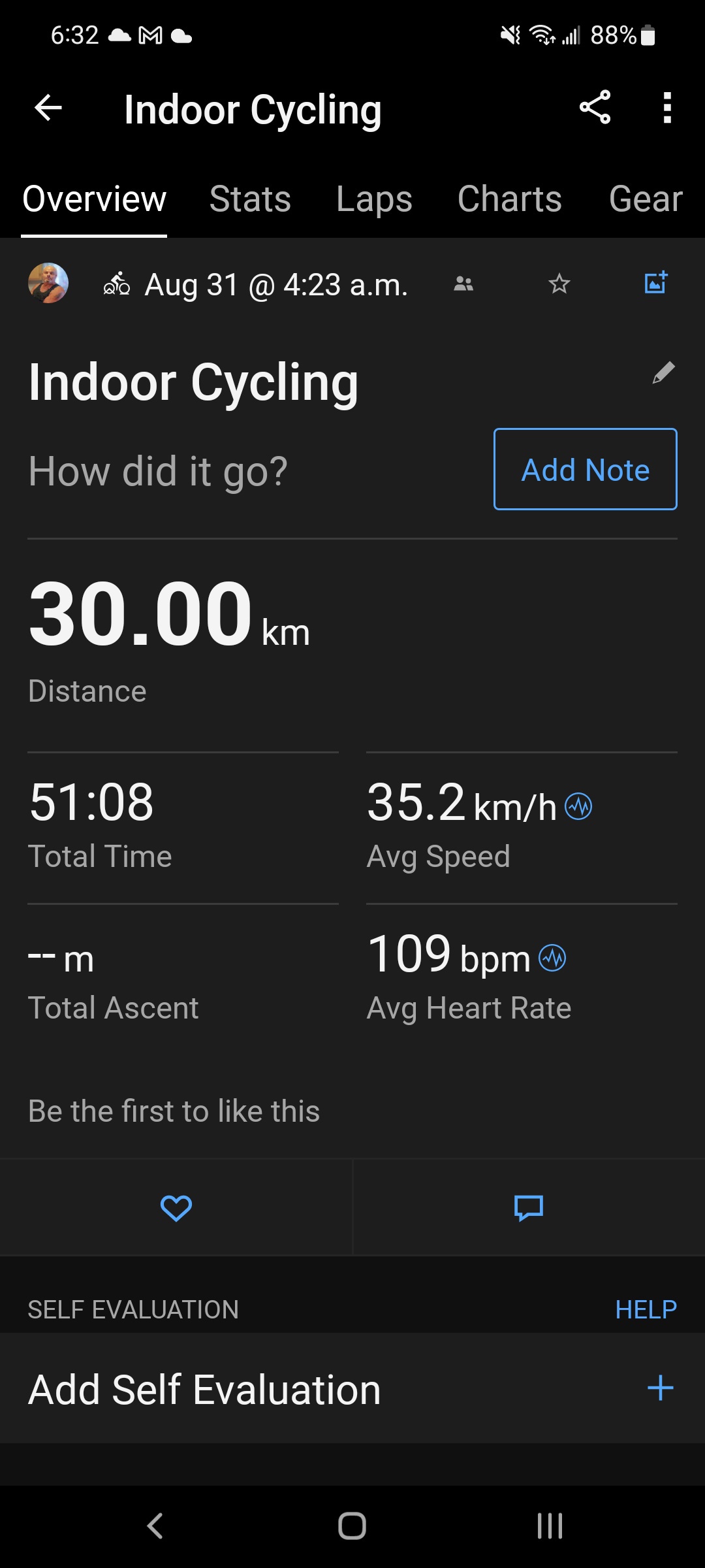 35.0 km ride - Rode 35.05 km on 08/26/25 - Tuesday, August 26, 2025