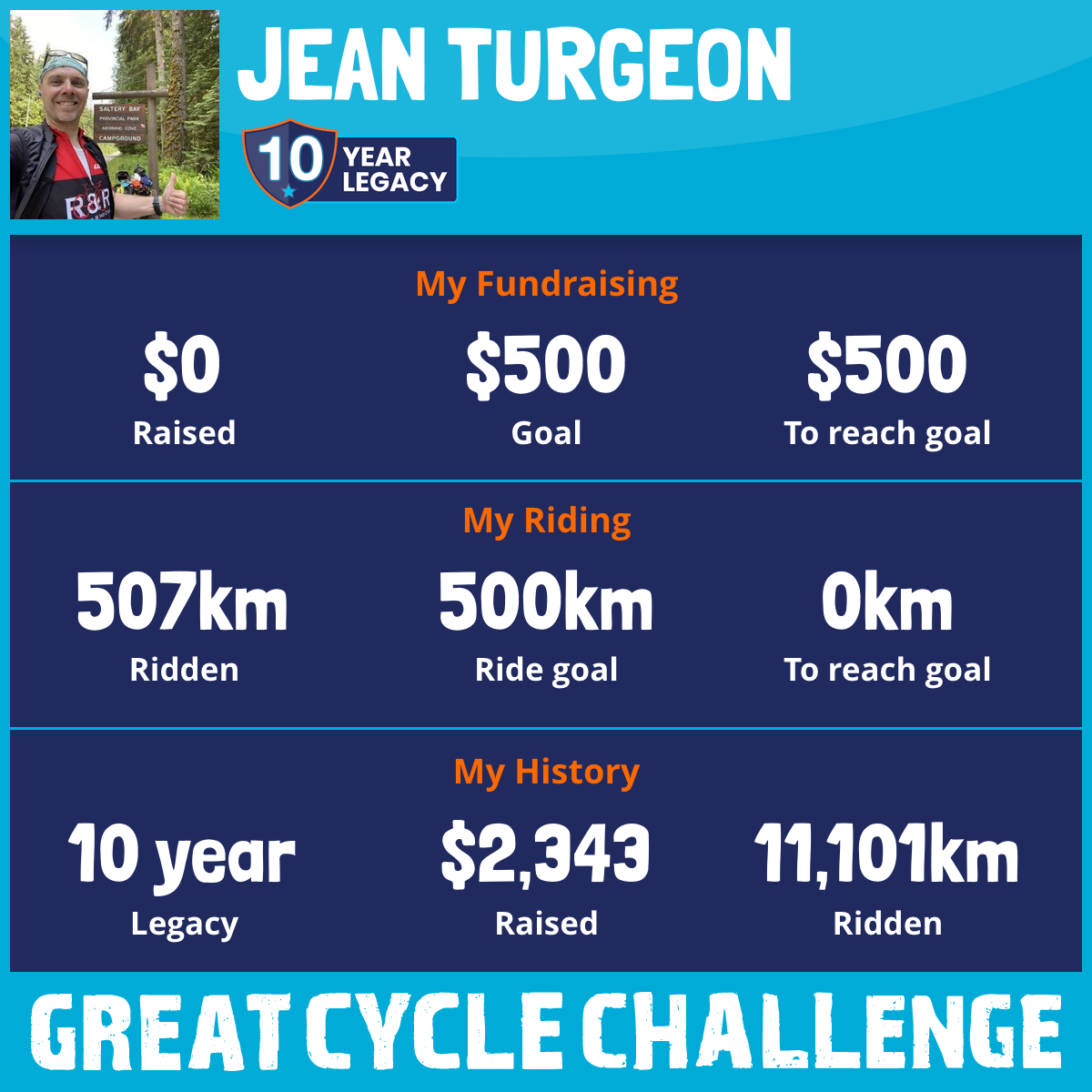 RIding for all of you - My suffering climbing the hills is nothing to what you have had or have to endure... Love Jean