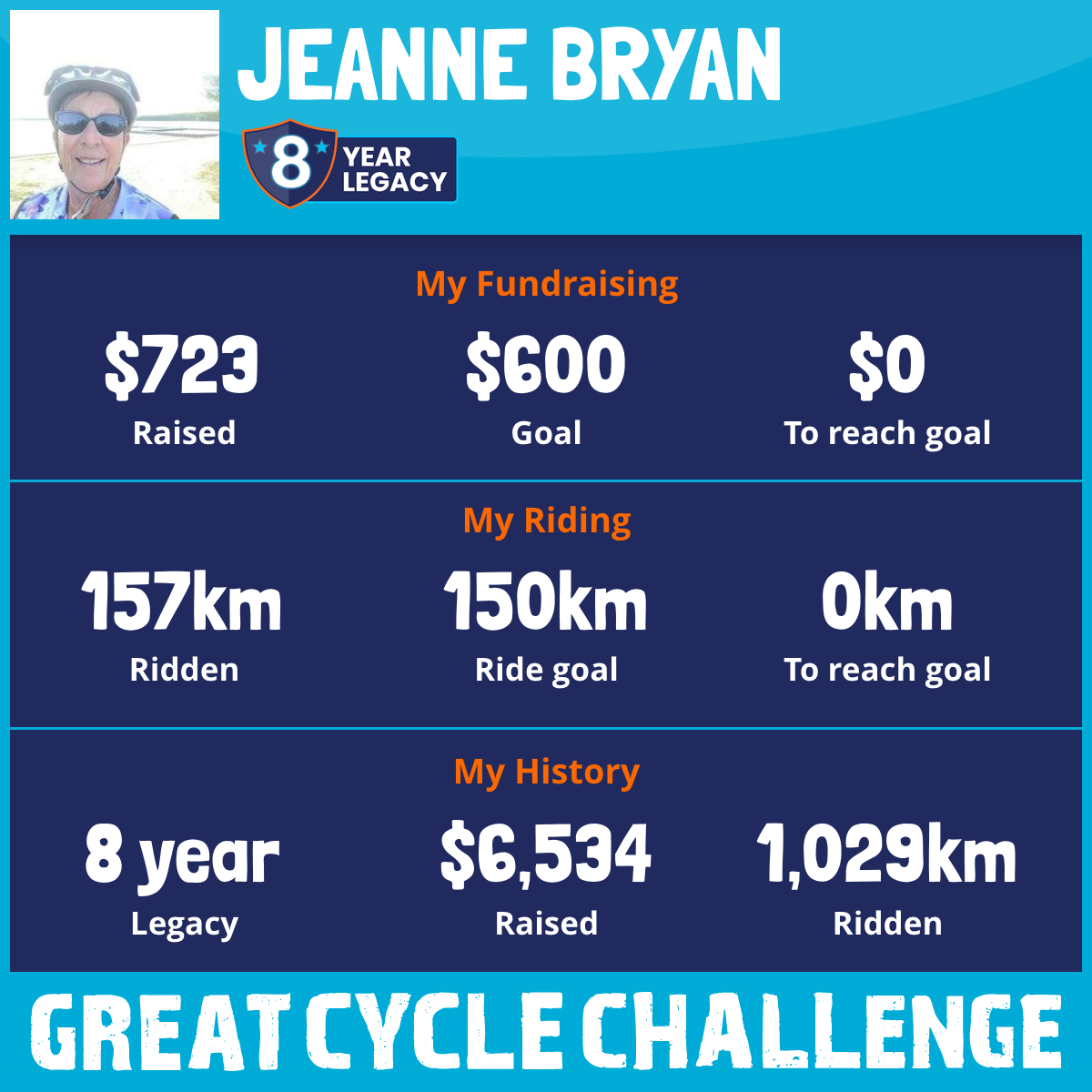 117 km Ridden$1,474 Raised2023