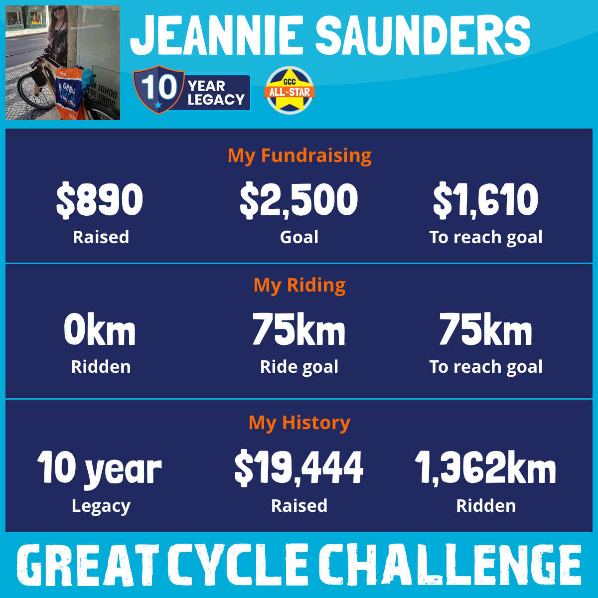 August 2025 is my 10th consecutive year fundraising for KID'S CANCER and to date my sponsors have raised an amazing $18,554.32.