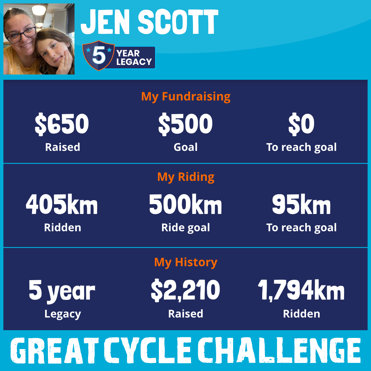 405 km Ridden$650 Raised2025