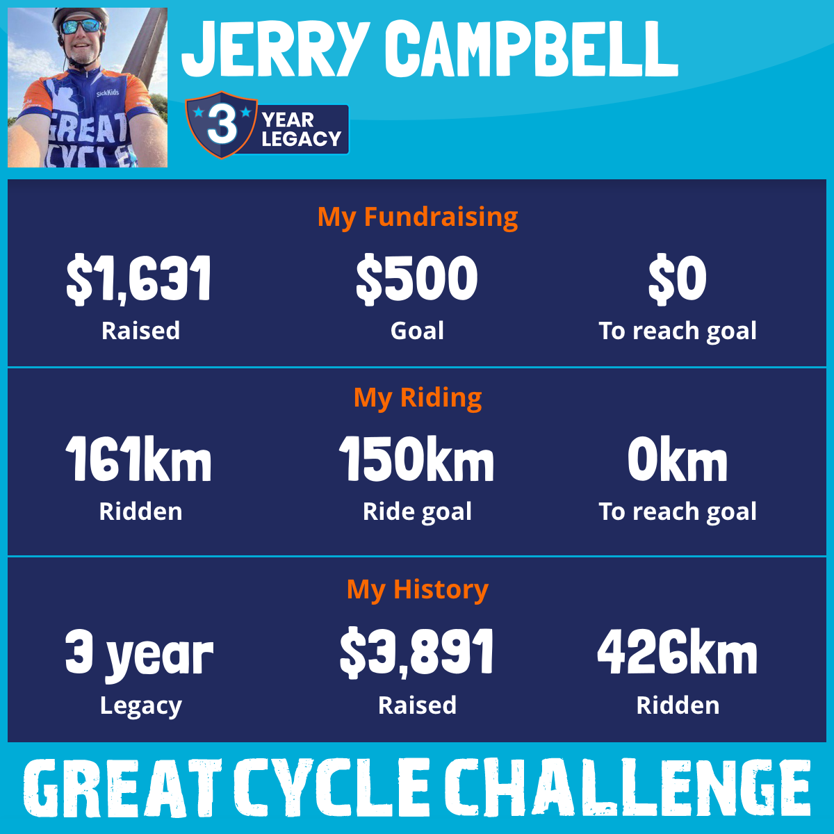 So I am raising funds through my challenge to help these kids and support SickKids Foundation to allow them to continue their work in developing treatments and finding a cure for childhood cancer.