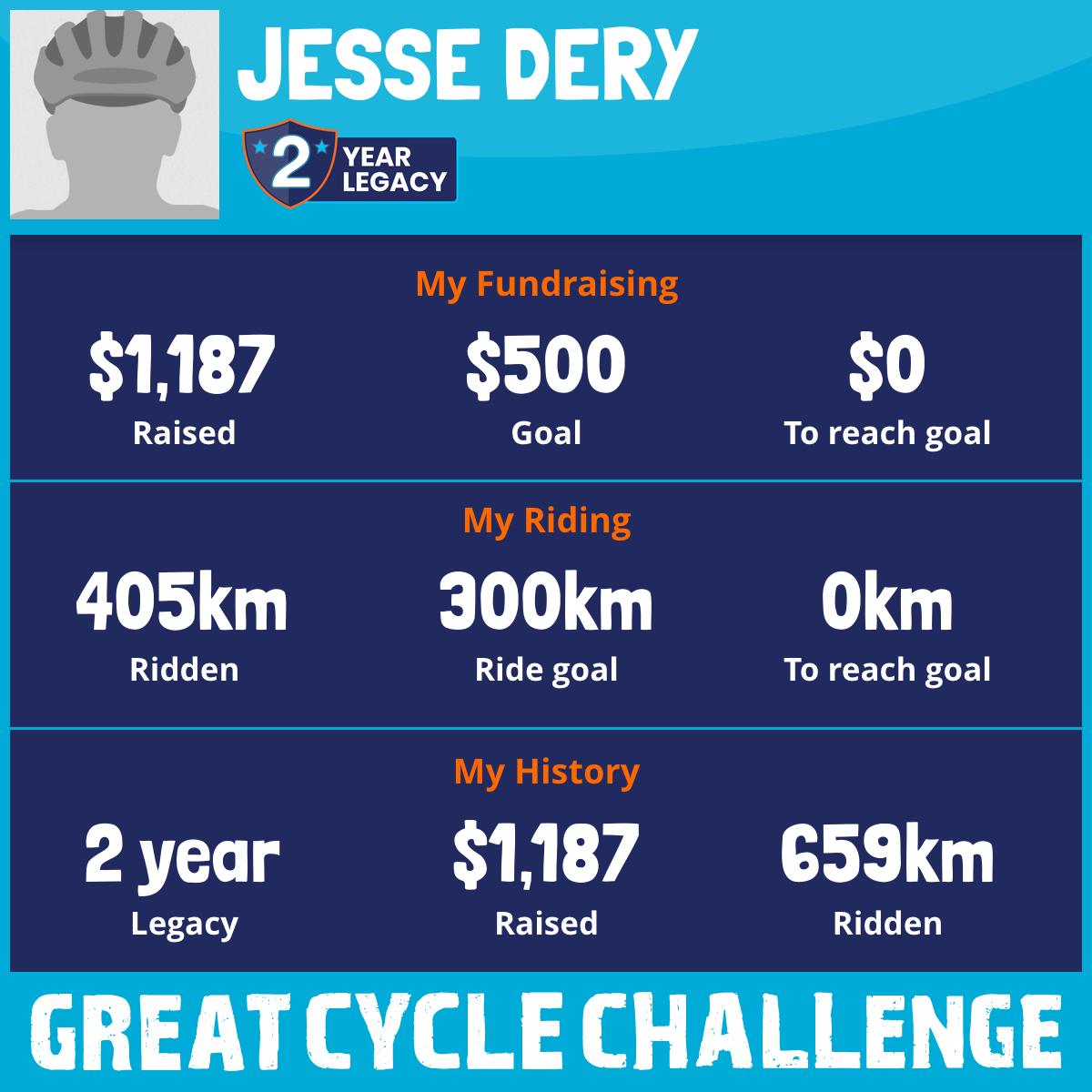 405 km Ridden$1,187 Raised2026