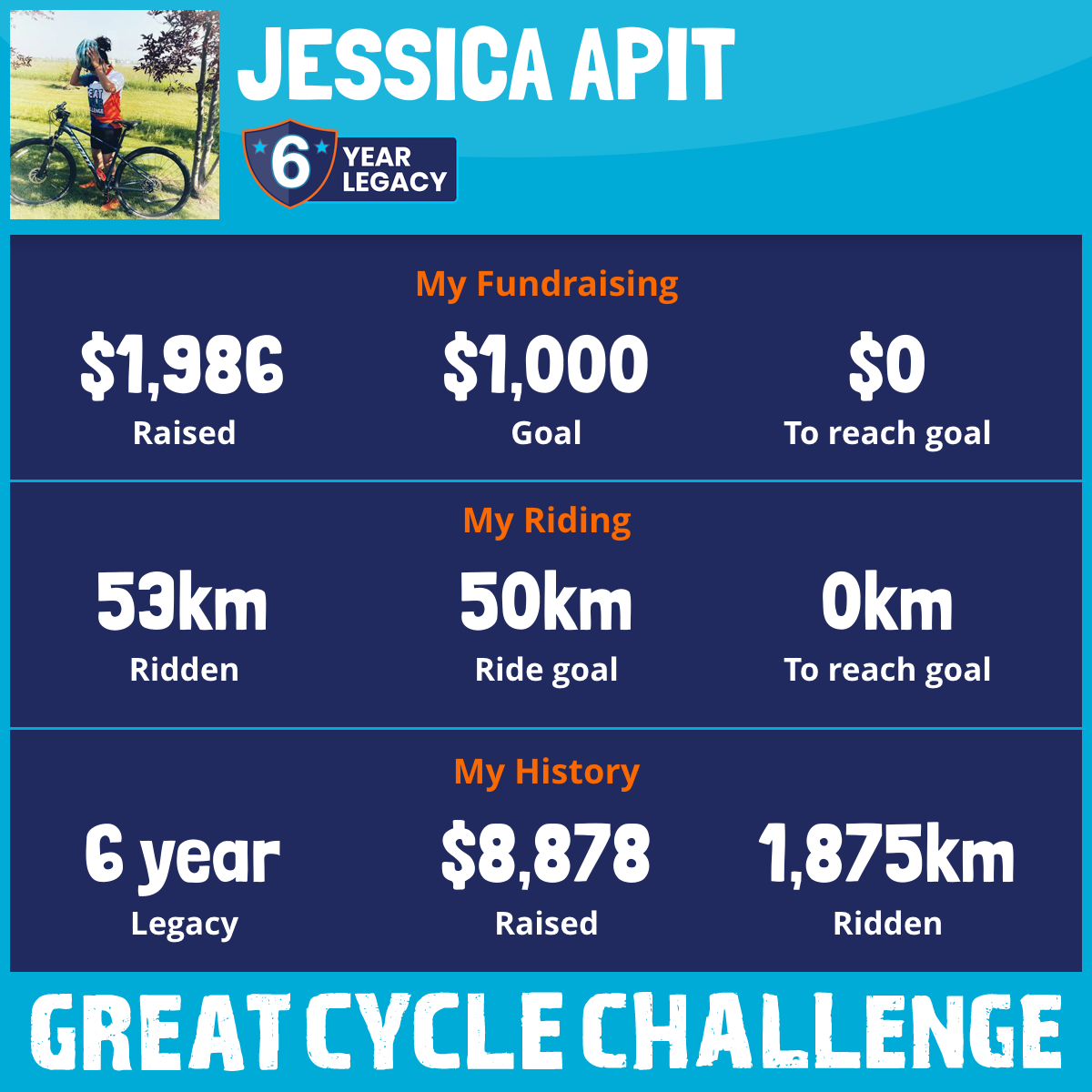 182 km Ridden$1,738 Raised2023