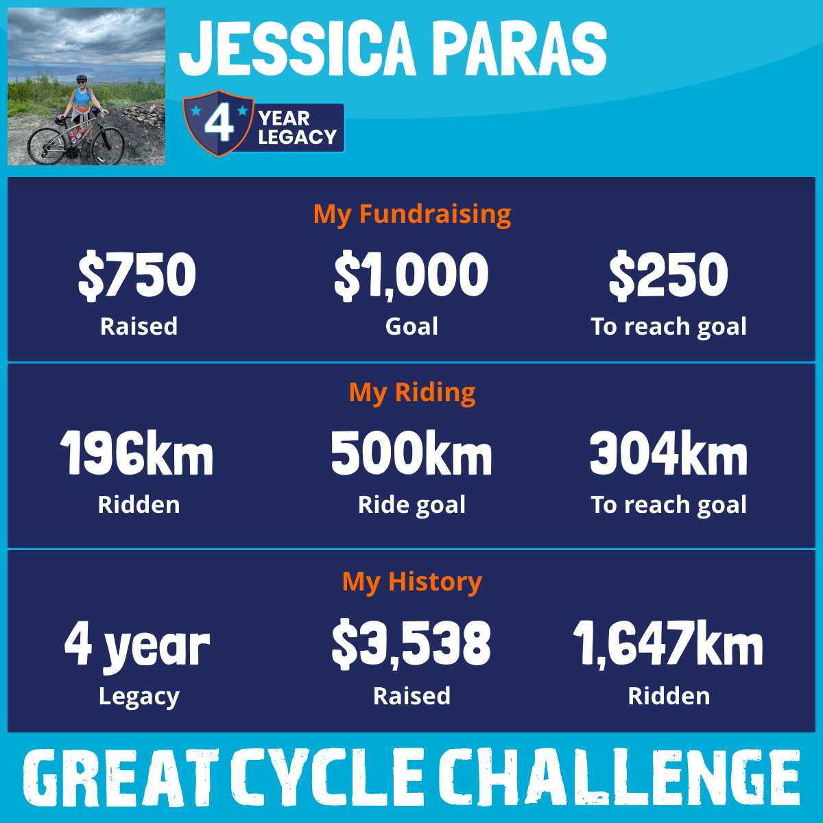 196 km Ridden$750 Raised2025