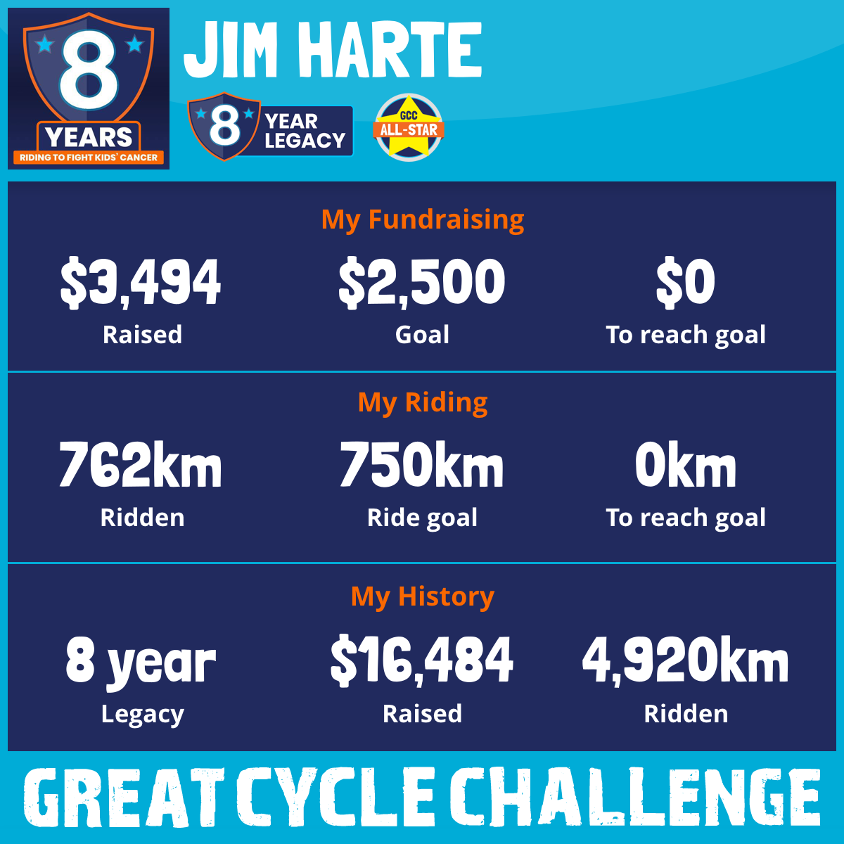 762 km Ridden$3,494 Raised2025