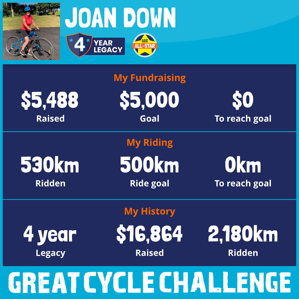 530 km Ridden$5,488 Raised2026