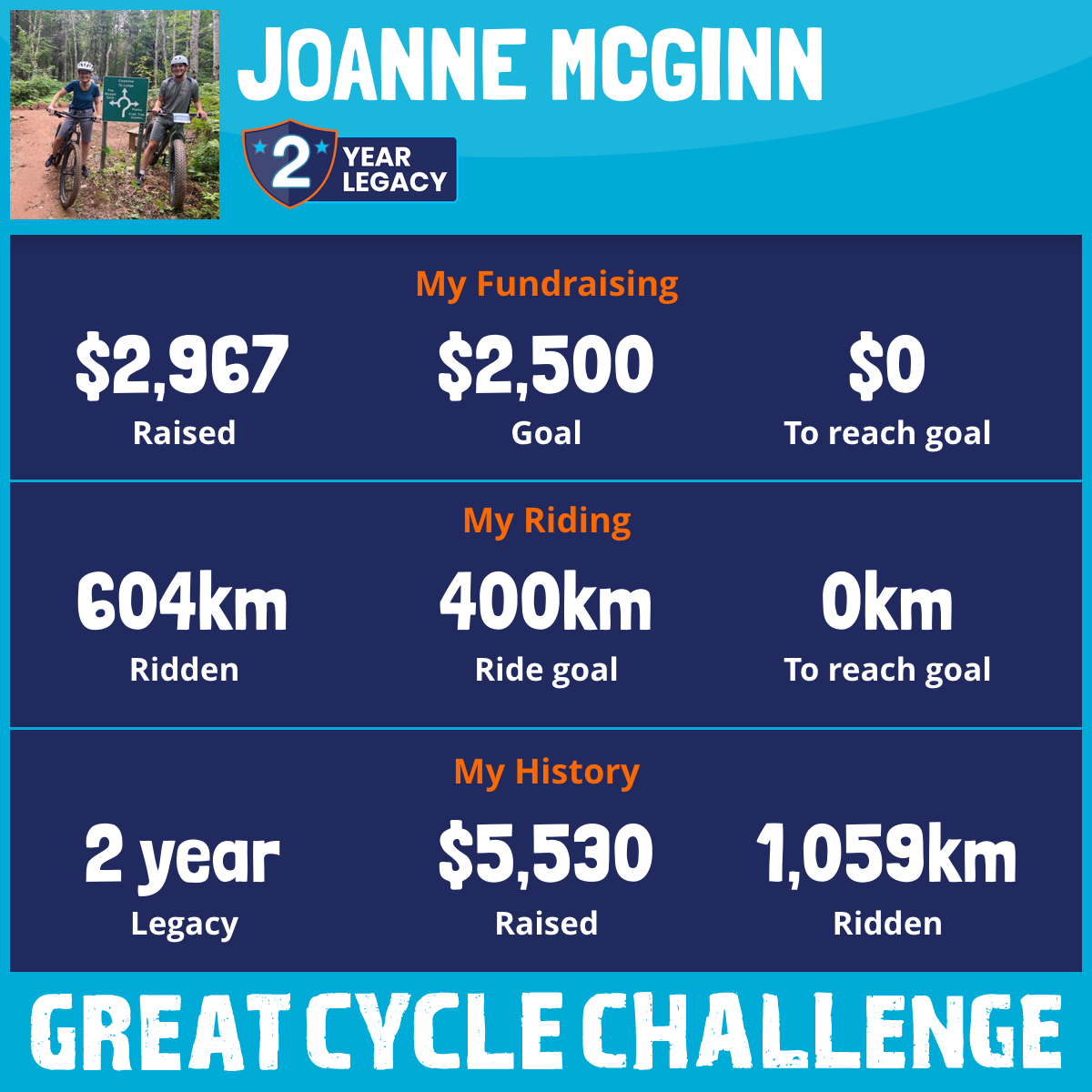 604 km Ridden$2,967 Raised2025