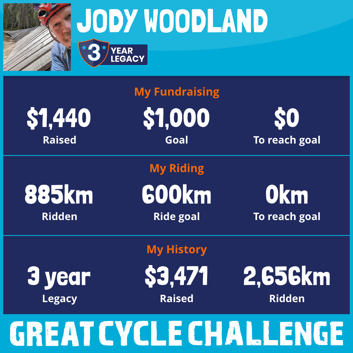 885 km Ridden$1,440 Raised2025