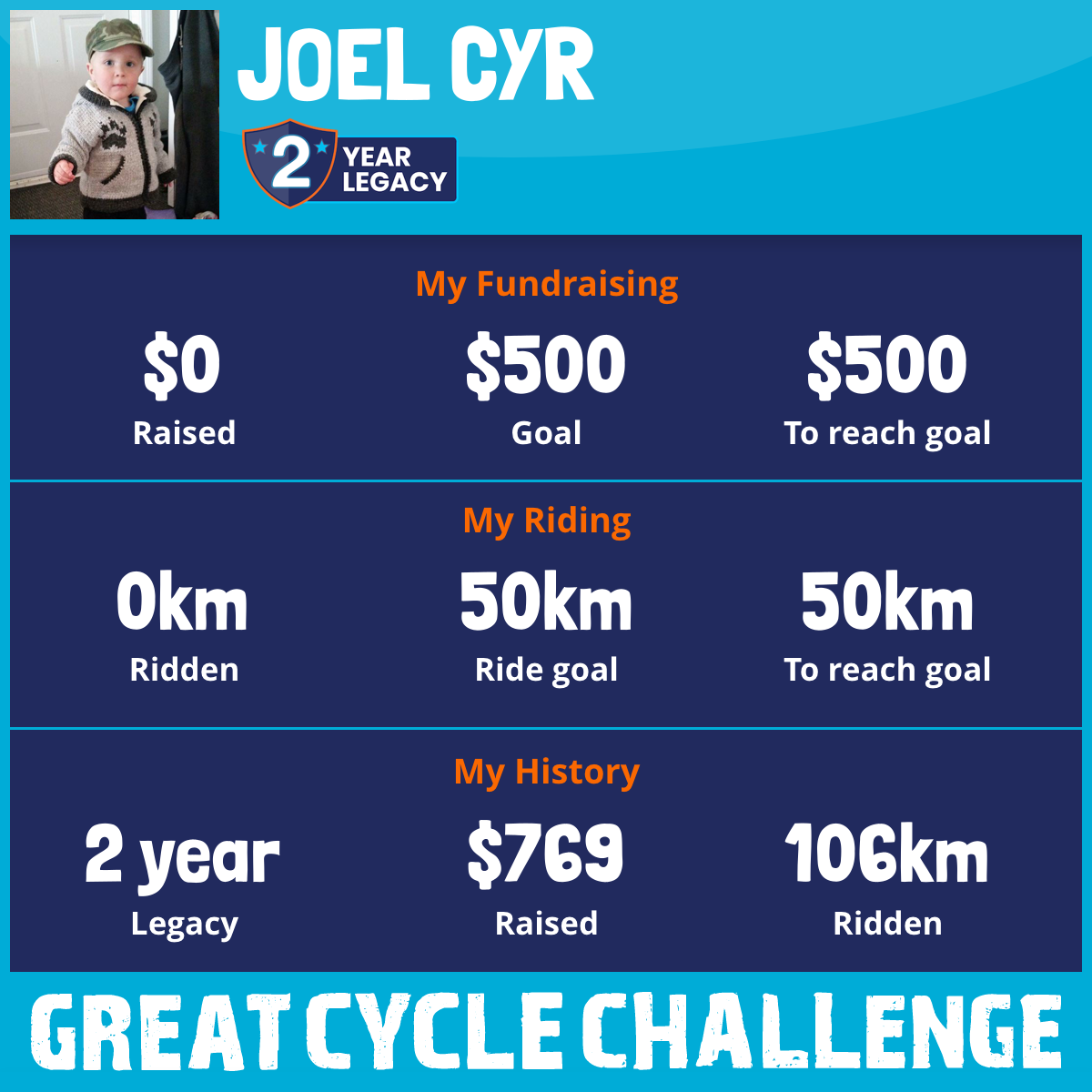 106 km Ridden$769 Raised2019