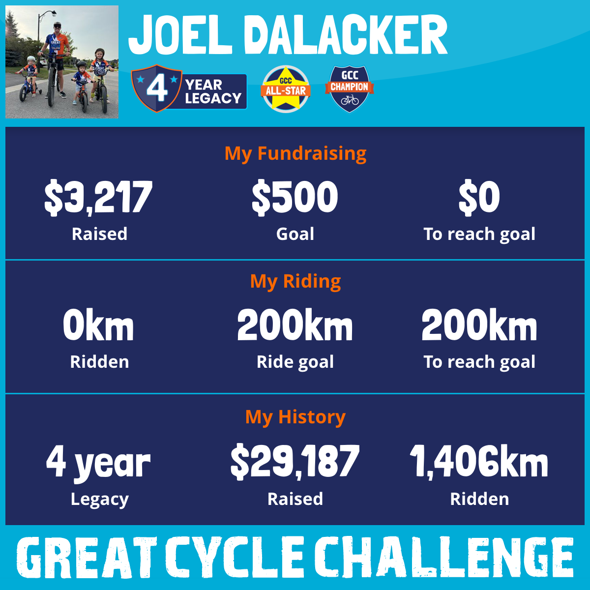 1,085 km Ridden$5,100 Raised2023