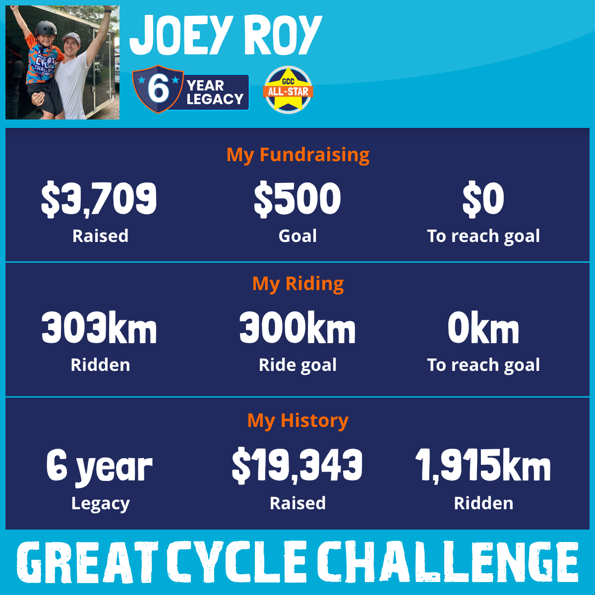 I am riding 300 km in memory of JC Roy. Please sponsor me and support my challenge to fight kids' cancer and save little lives.