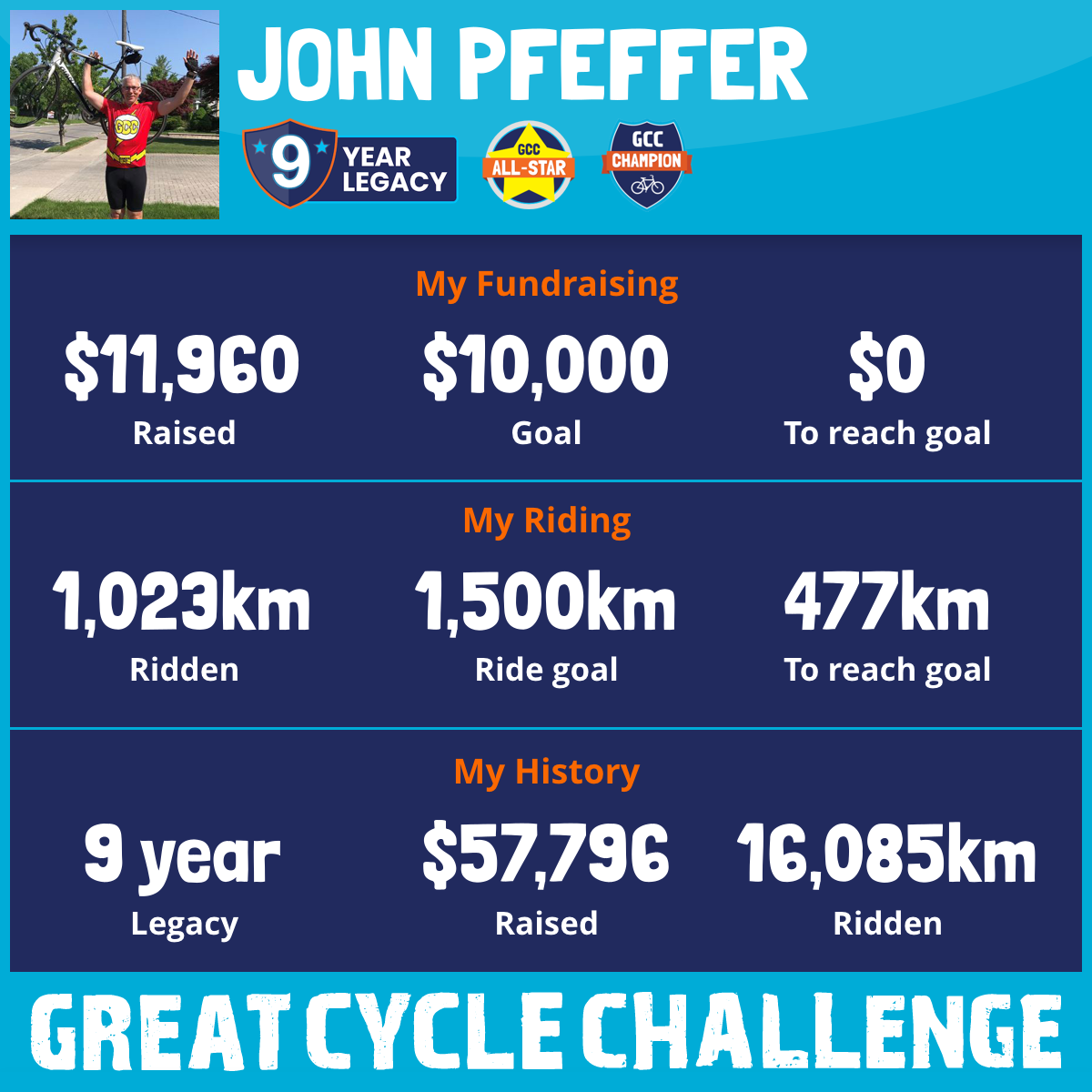 1,023 km Ridden$11,960 Raised2025