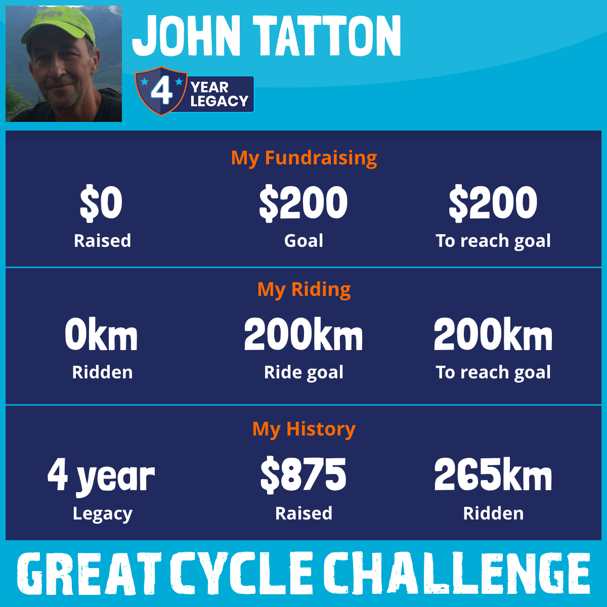 I am riding 200 km in memory of Norman Tatton. Please sponsor me and support my challenge to fight kids' cancer and save little lives.