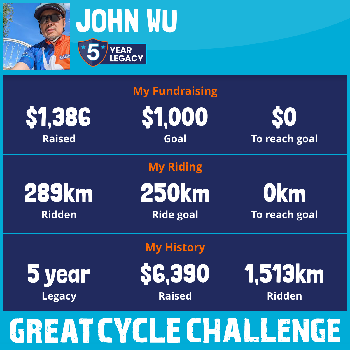 289 km Ridden$1,386 Raised2026