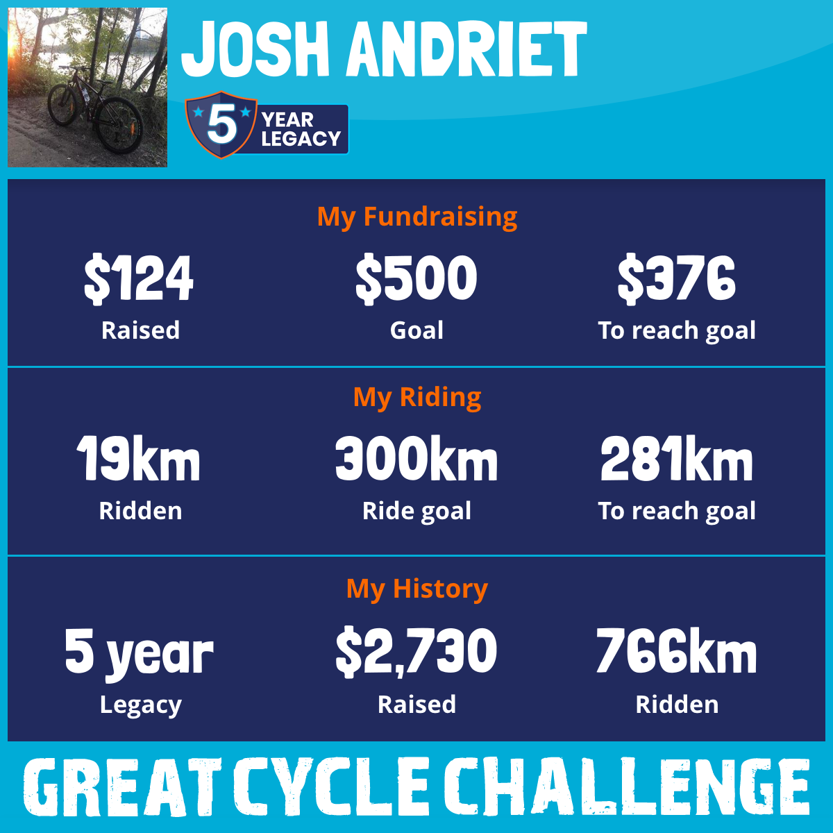 184 km Ridden$1,071 Raised2021