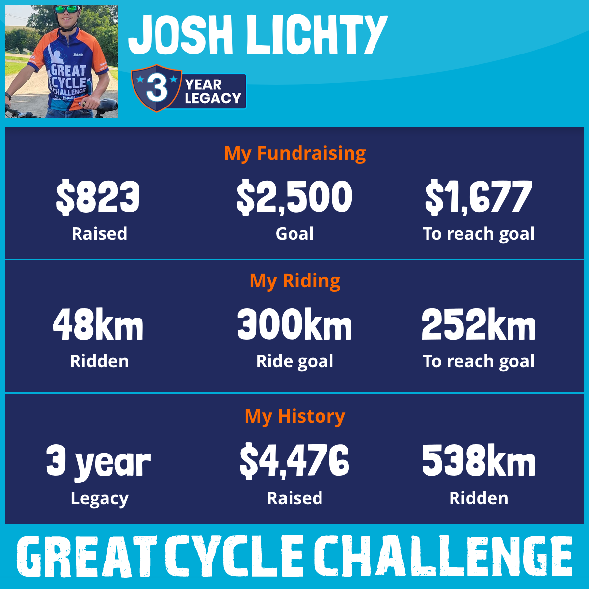 337 km Ridden$2,568 Raised2023