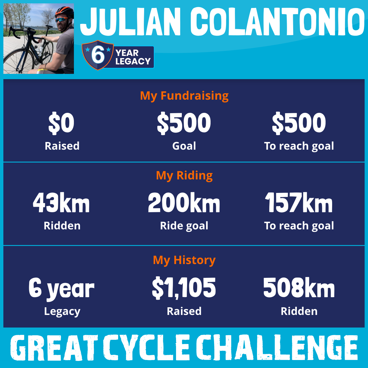 441 km Ridden$1,105 Raised2018