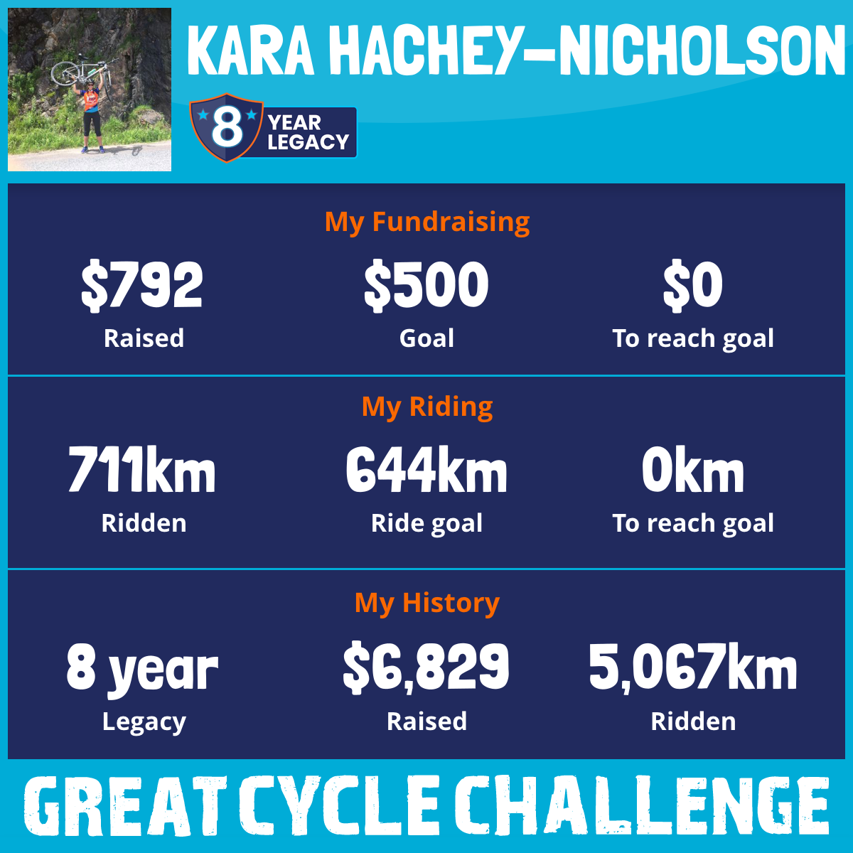 520 km Ridden$600 Raised2018