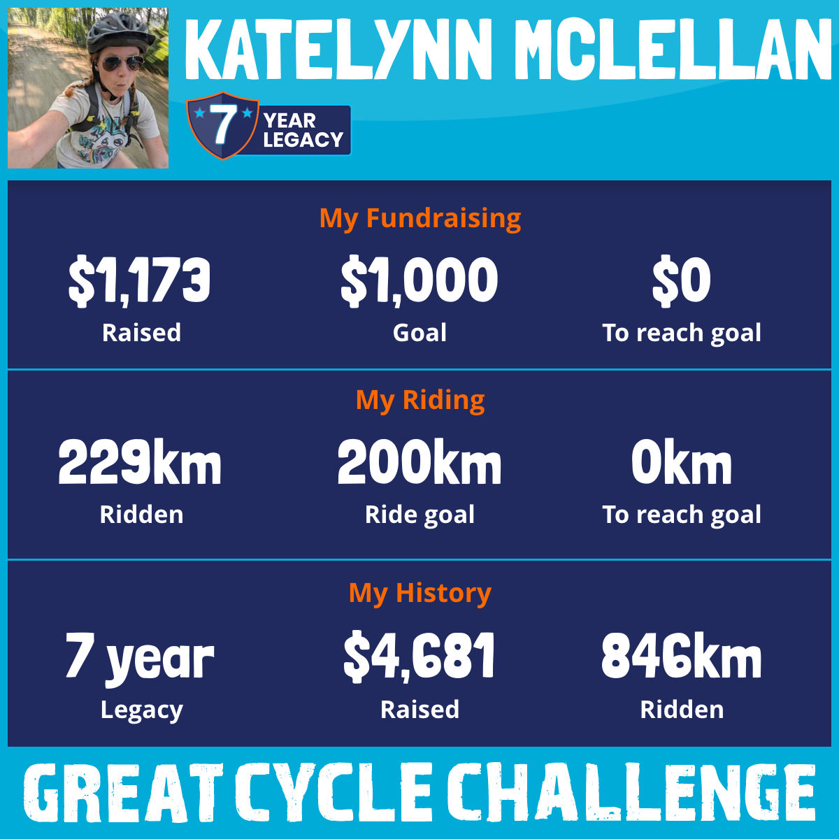 229 km Ridden$1,173 Raised2025