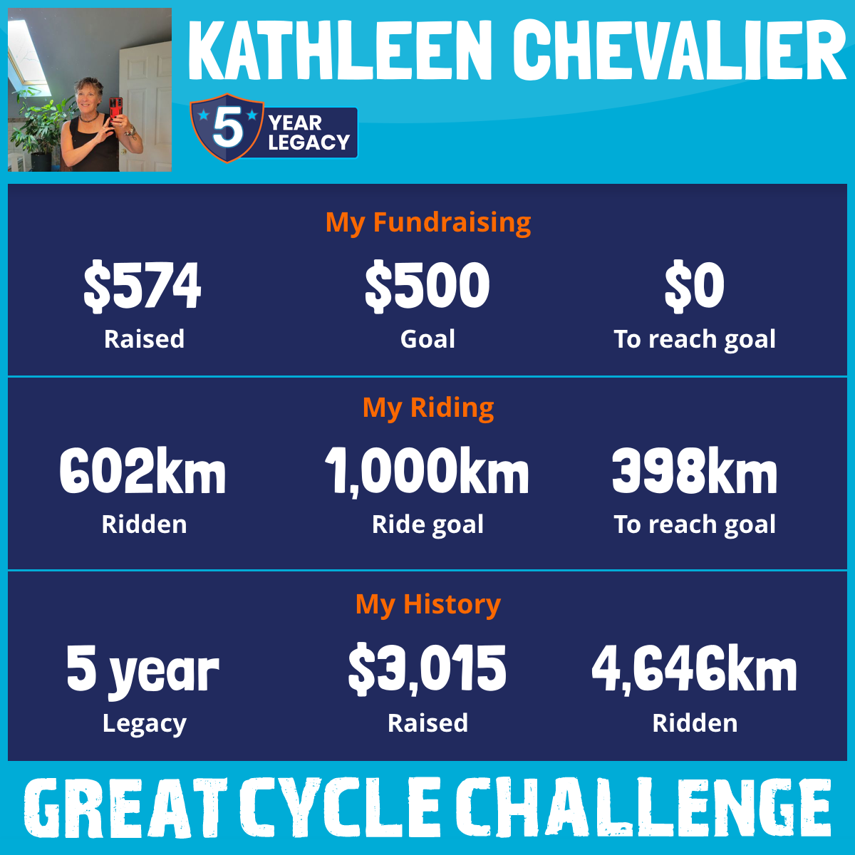 I am riding 1,000 km for Murray Chevalier. Please sponsor me and support my challenge to fight kids' cancer and save little lives.
