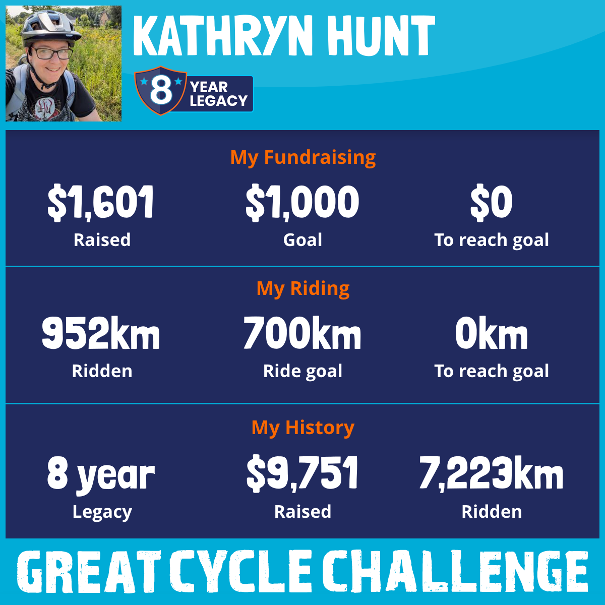 This'll be year EIGHT for me! I'm still riding for my cousin Ellie. She's not really a kid anymore - she's in university now (what?!). But I'm still out here riding to raise money to support cures and treatment for kids like her.
