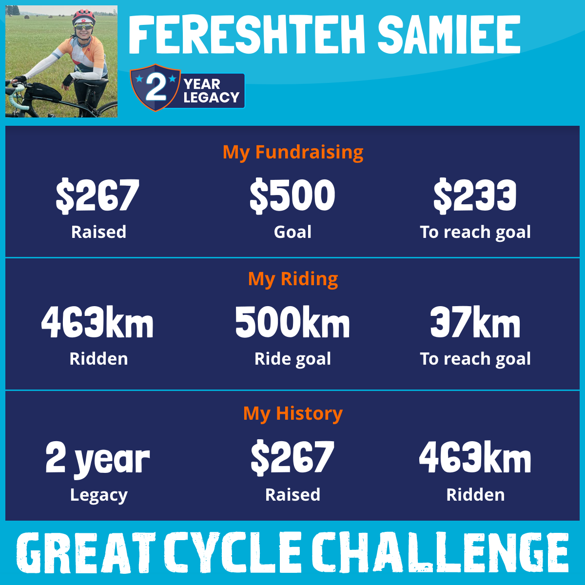 463 km Ridden$267 Raised2025