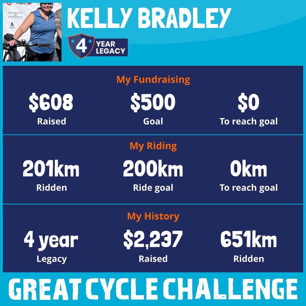 201 km Ridden$608 Raised2025