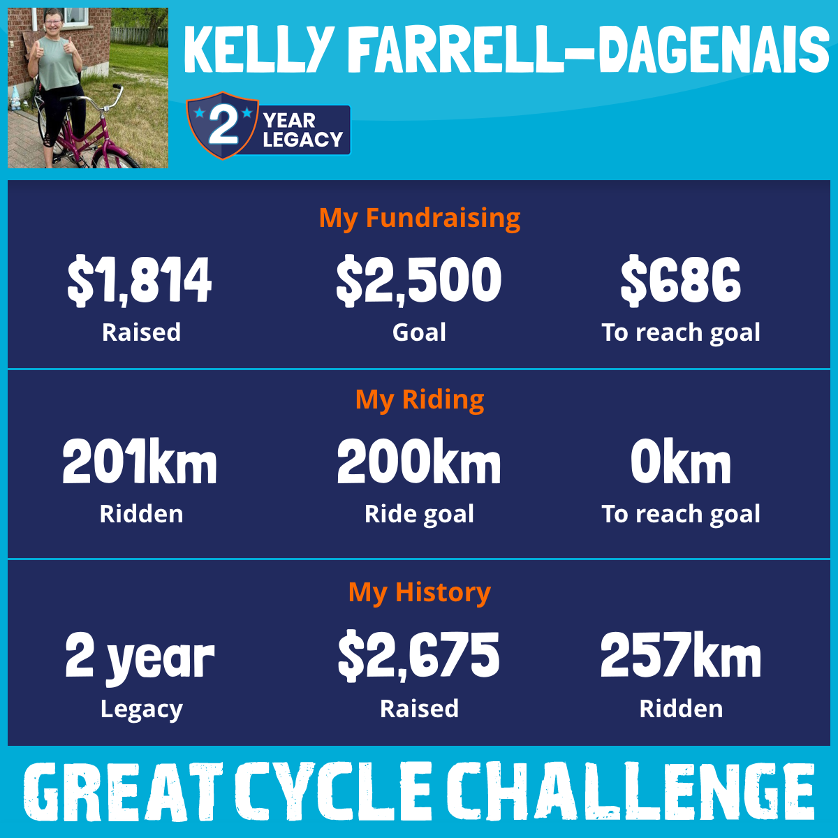201 km Ridden$1,814 Raised2026