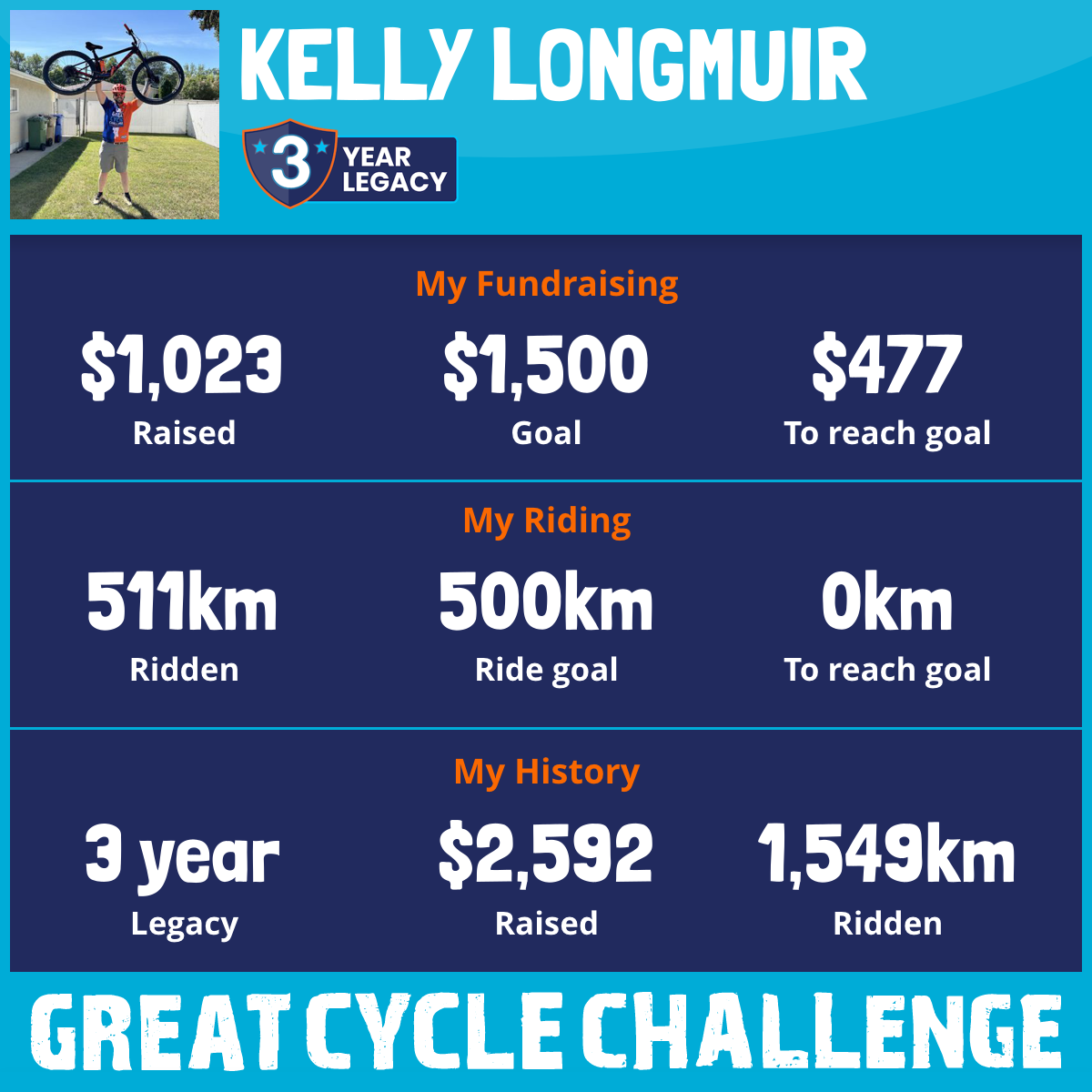 511 km Ridden$1,023 Raised2025