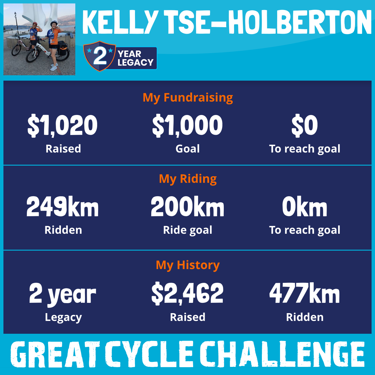 249 km Ridden$1,020 Raised2026