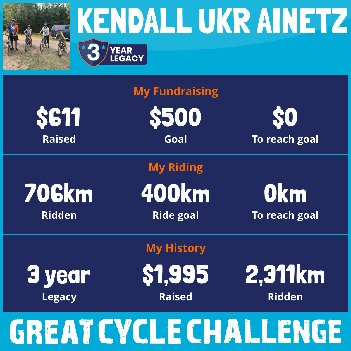 I am riding 500 km in memory of Merv,Guy,Ed,Doug. Please sponsor me and support my challenge to fight kids' cancer and save little lives.