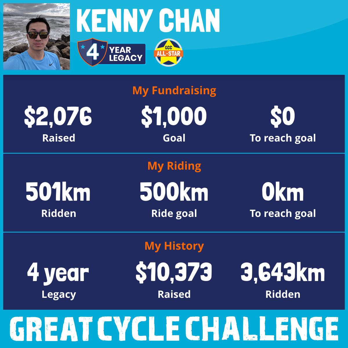 501 km Ridden$2,076 Raised2025