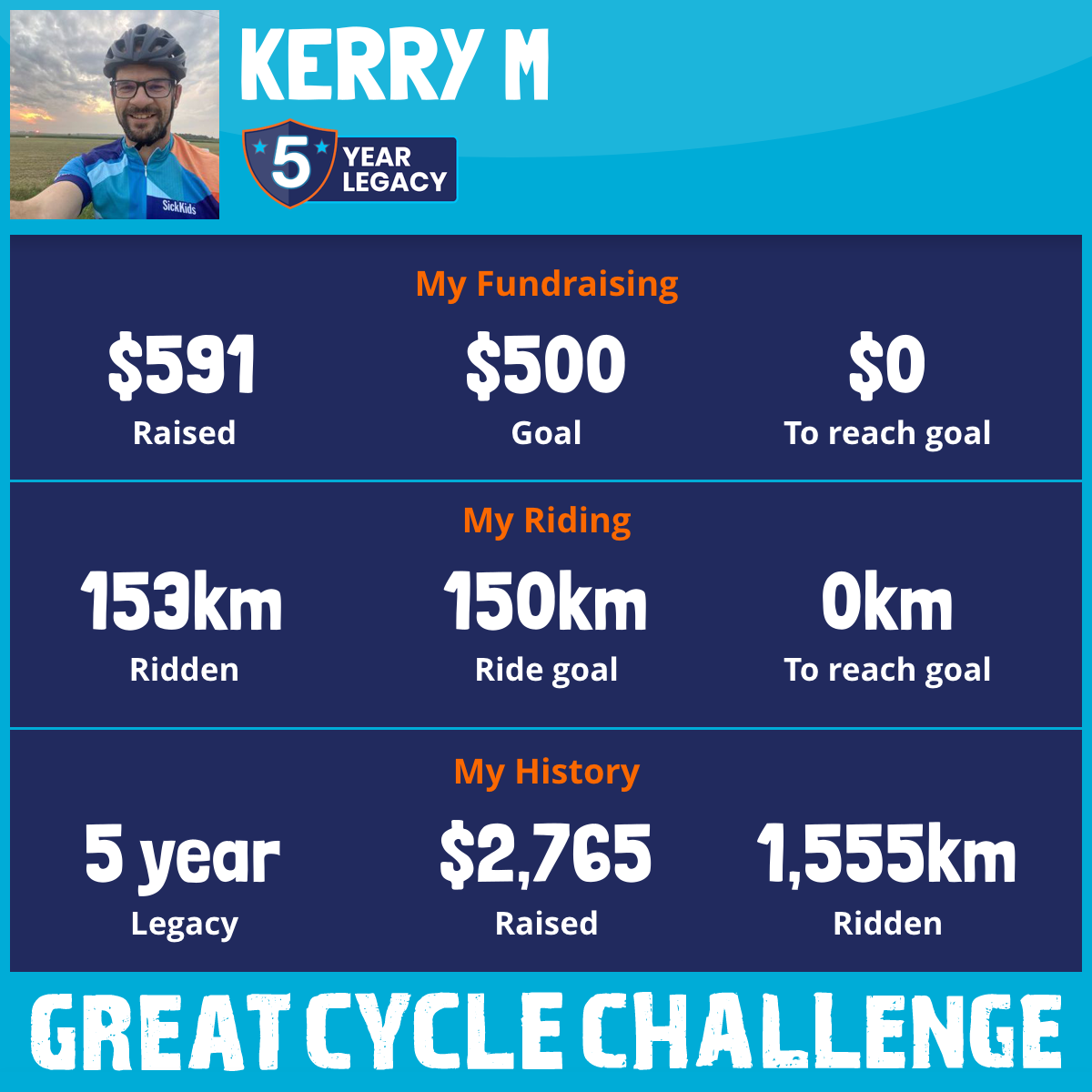 I am not "a natural" fundraiser but through my challenge I hope to help in a small way. Both for kids and the SickKids Foundation to allow them to continue their work in developing treatments and finding a cure for childhood cancer.