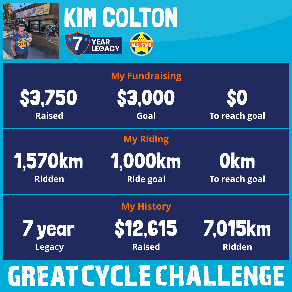 1,570 km Ridden$3,750 Raised2025