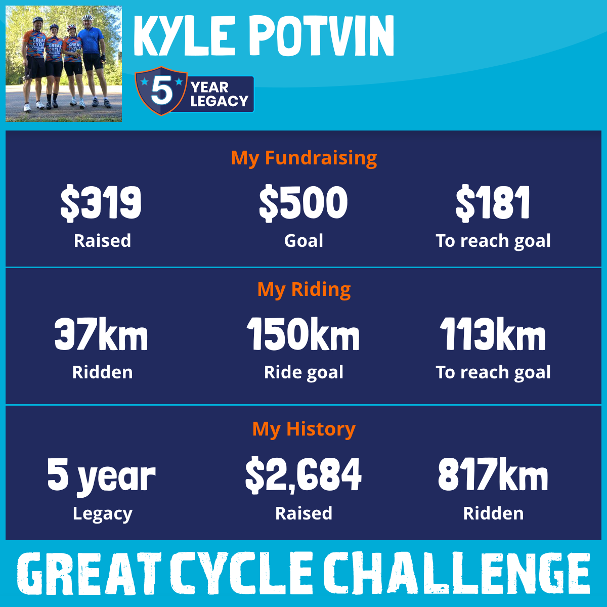 162 km Ridden$790 Raised2021