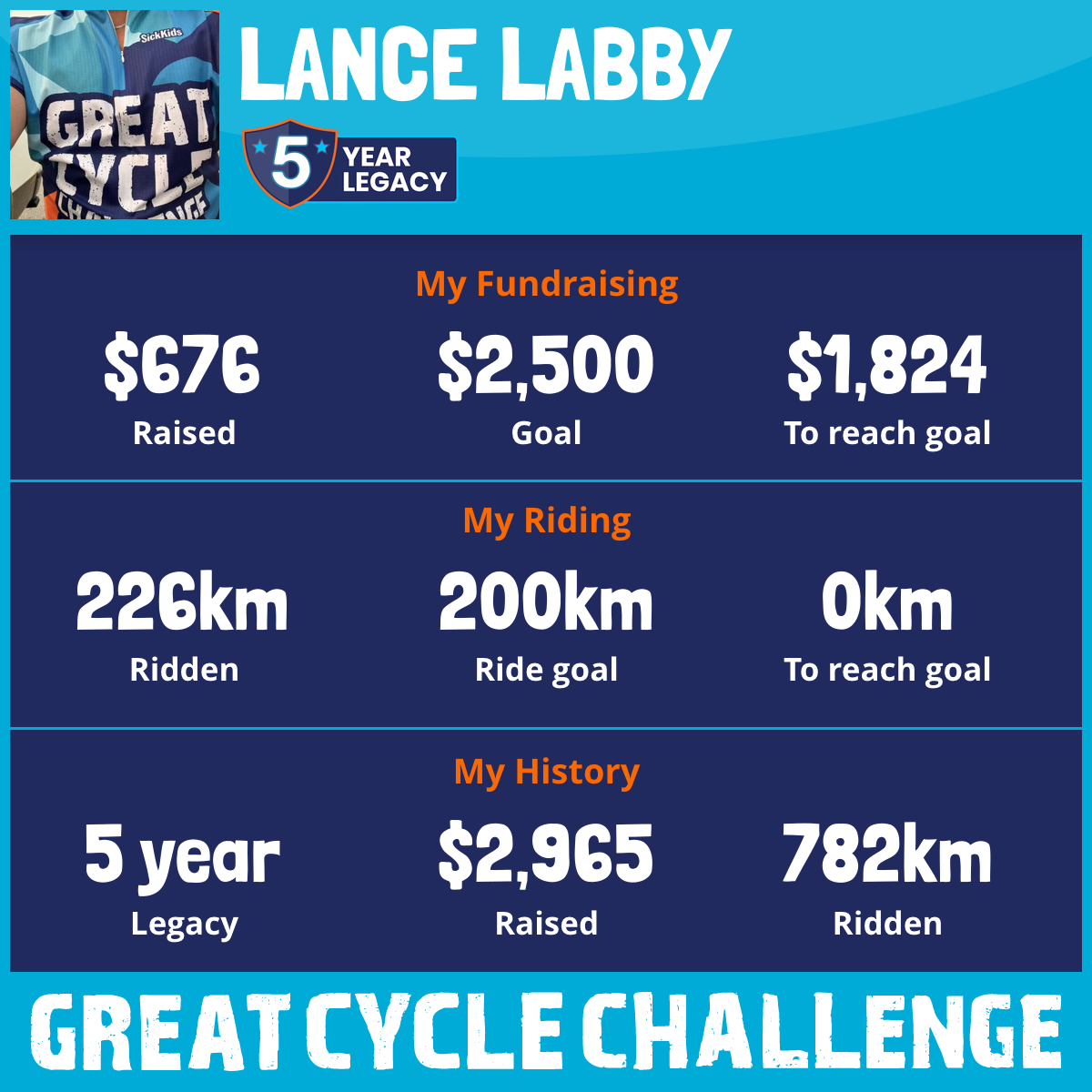 226 km Ridden$676 Raised2026