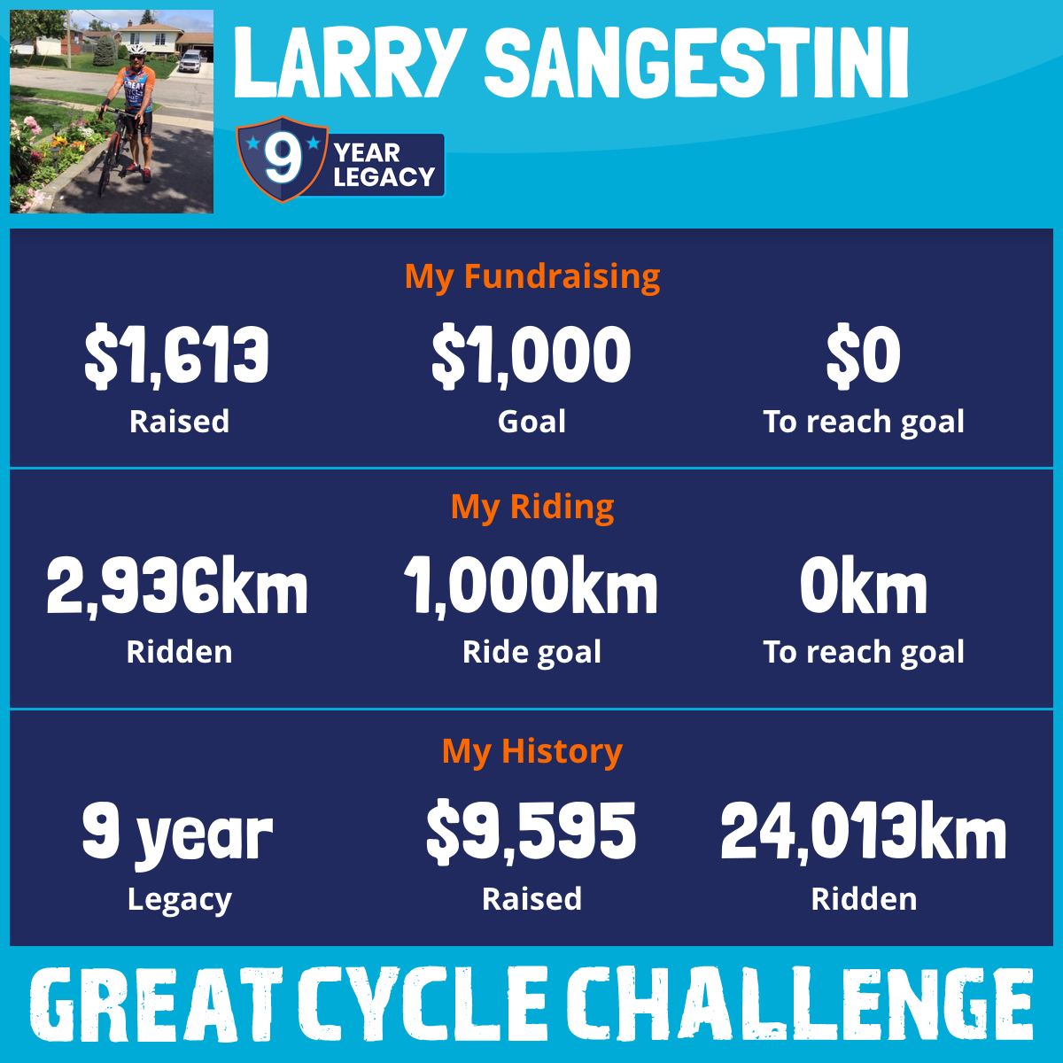 Your support will change little lives. Donate at https://greatcyclechallenge.ca/Riders/LarrySangestini