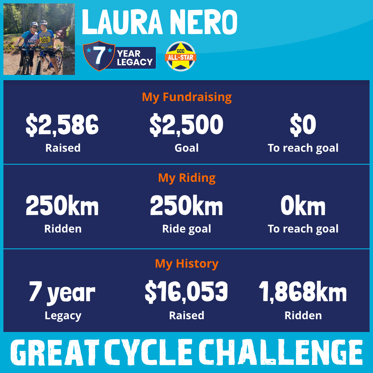250 km Ridden$2,586 Raised2025