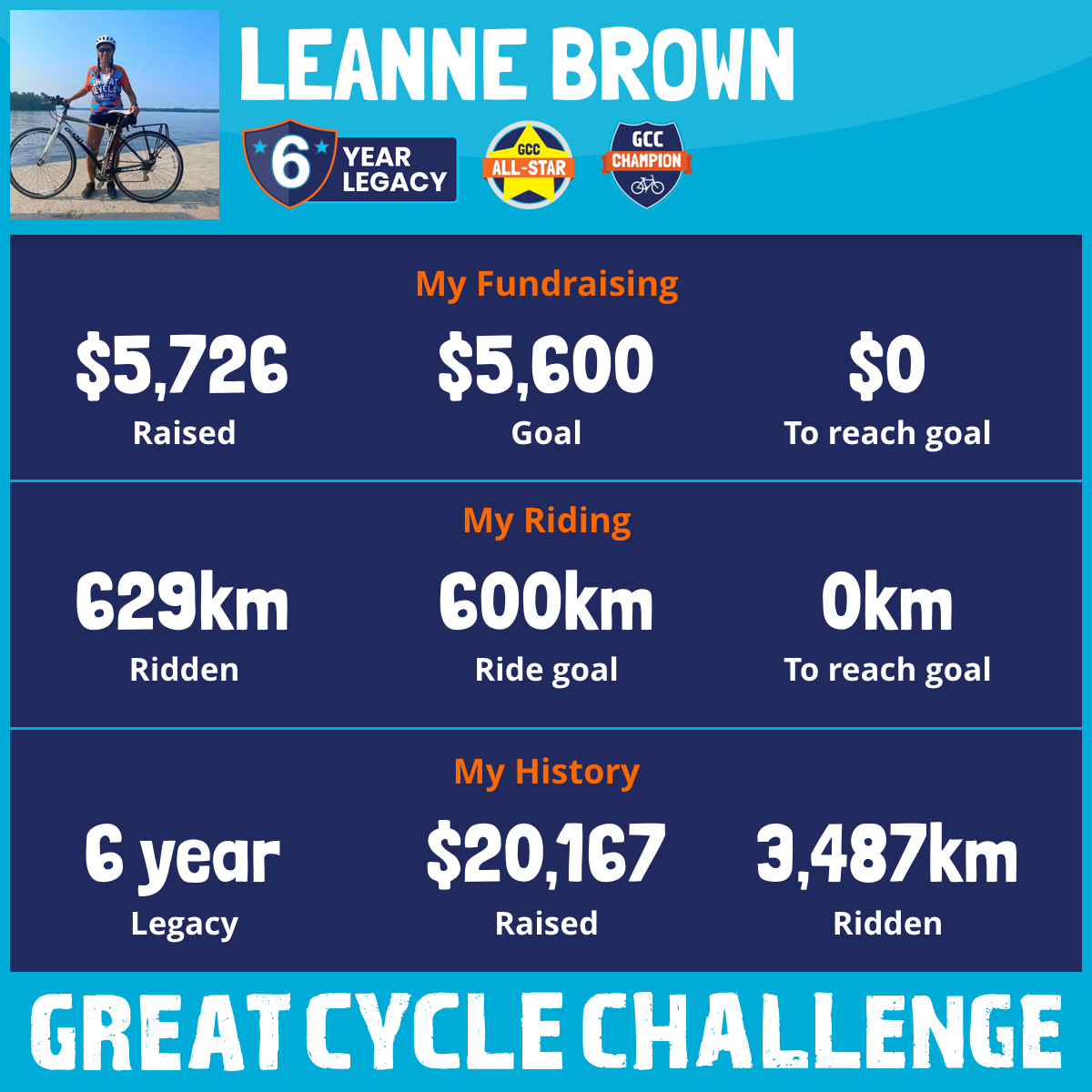 629 km Ridden$5,726 Raised2025