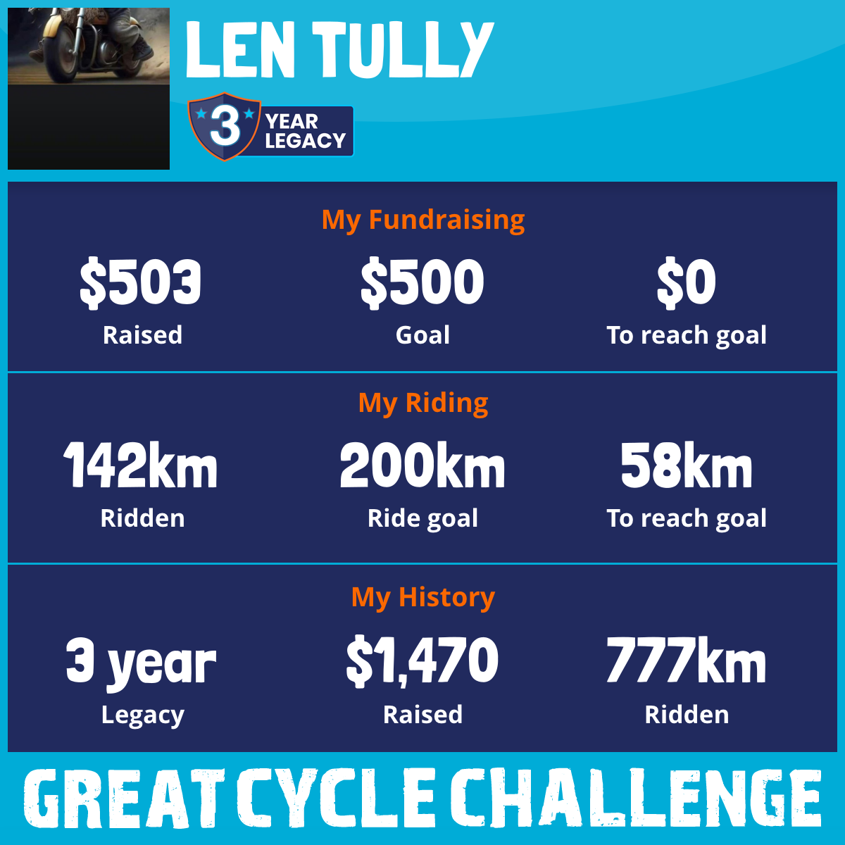 142 km Ridden$503 Raised2025