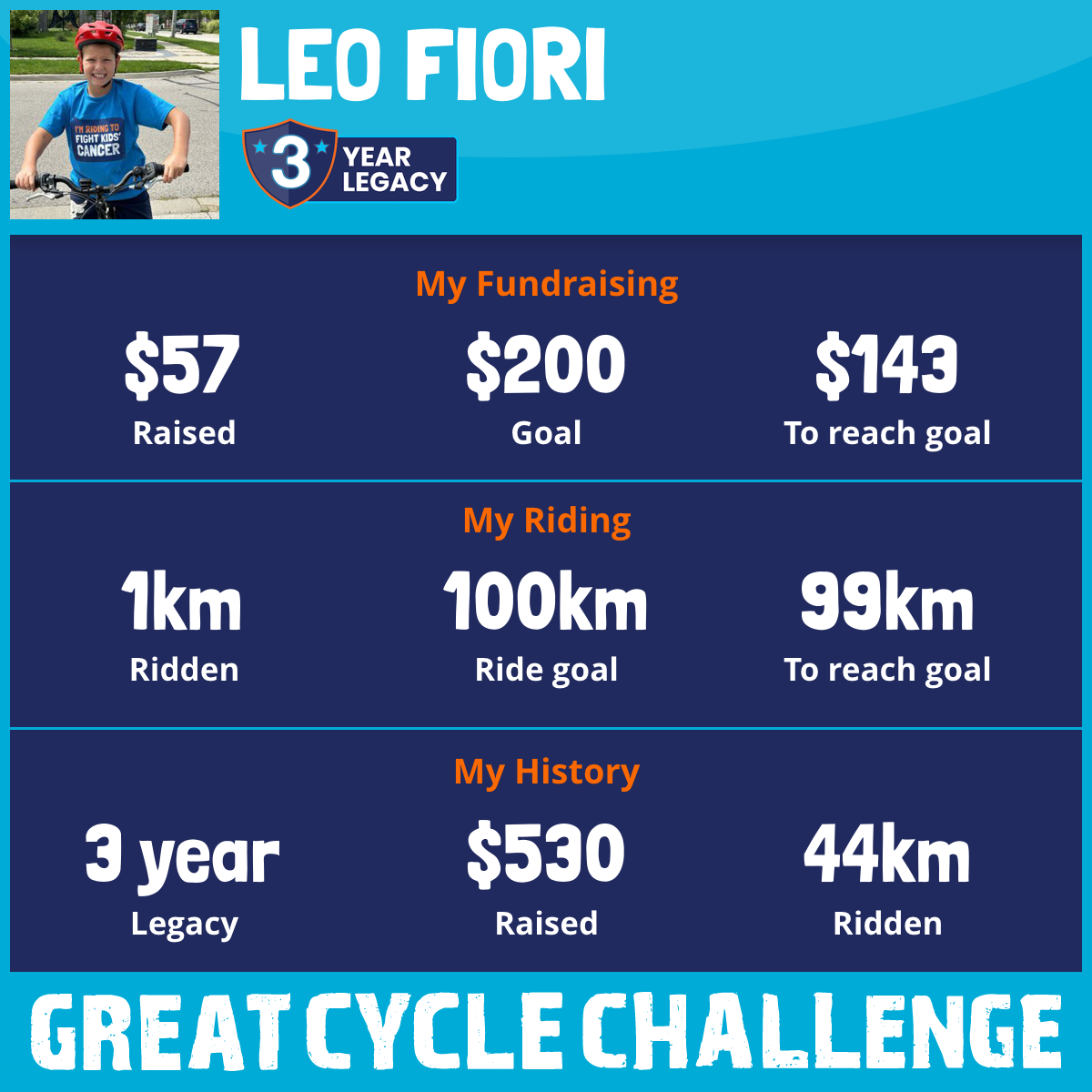 This August, I am taking part in the Great Cycle Challenge to fight kids' cancer!