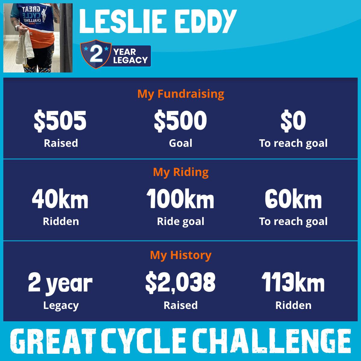 40 km Ridden$505 Raised2026