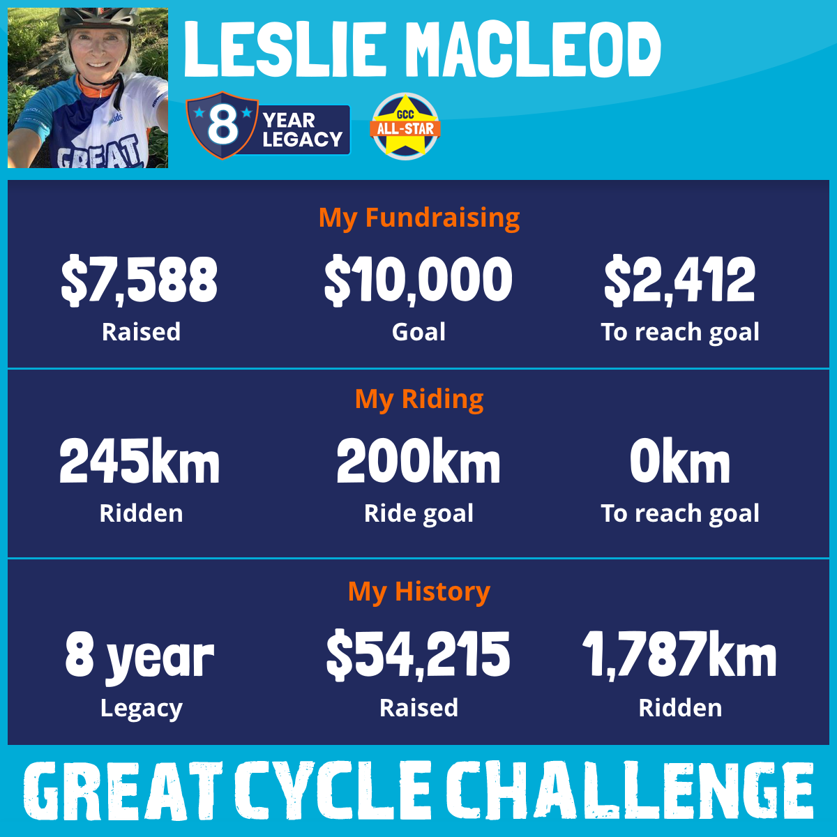 245 km Ridden$7,588 Raised2025