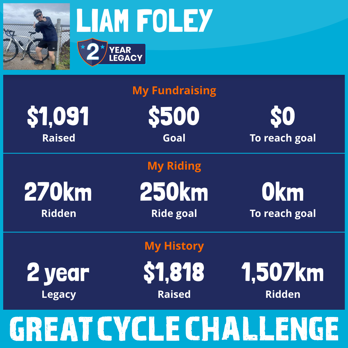 270 km Ridden$1,091 Raised2025