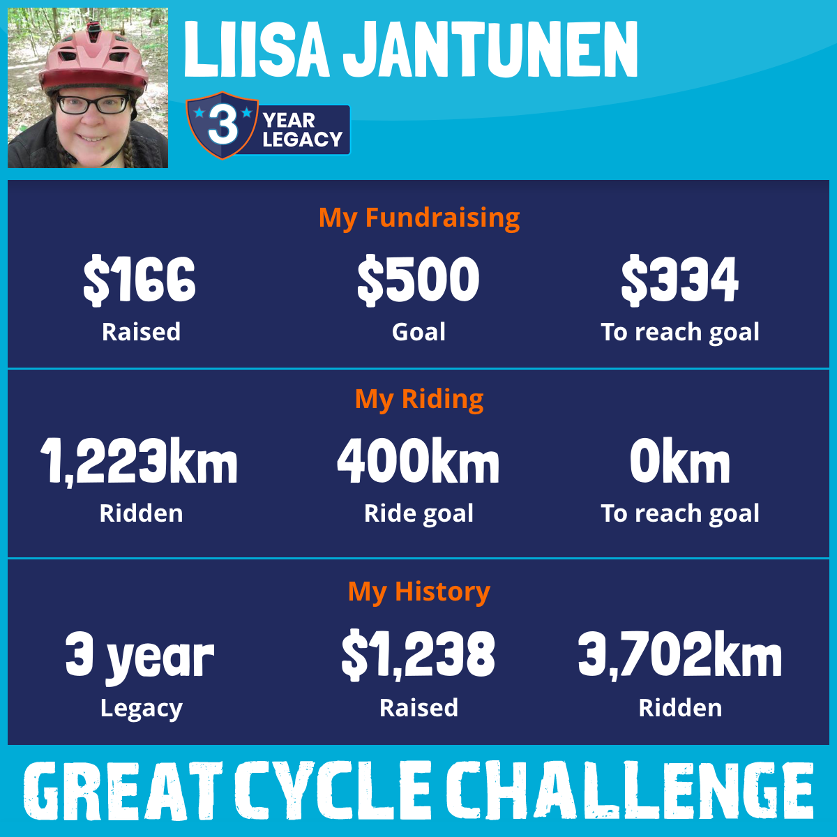 1,223 km Ridden$166 Raised2025