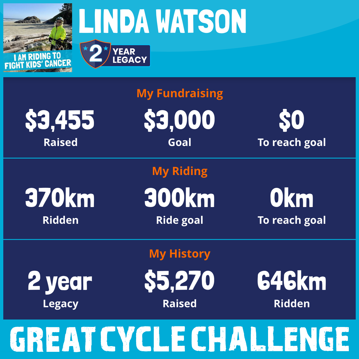 370 km Ridden$3,455 Raised2026