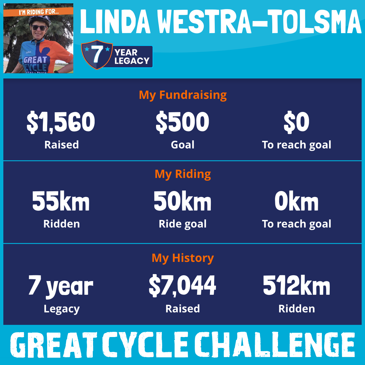 55 km Ridden$1,560 Raised2025