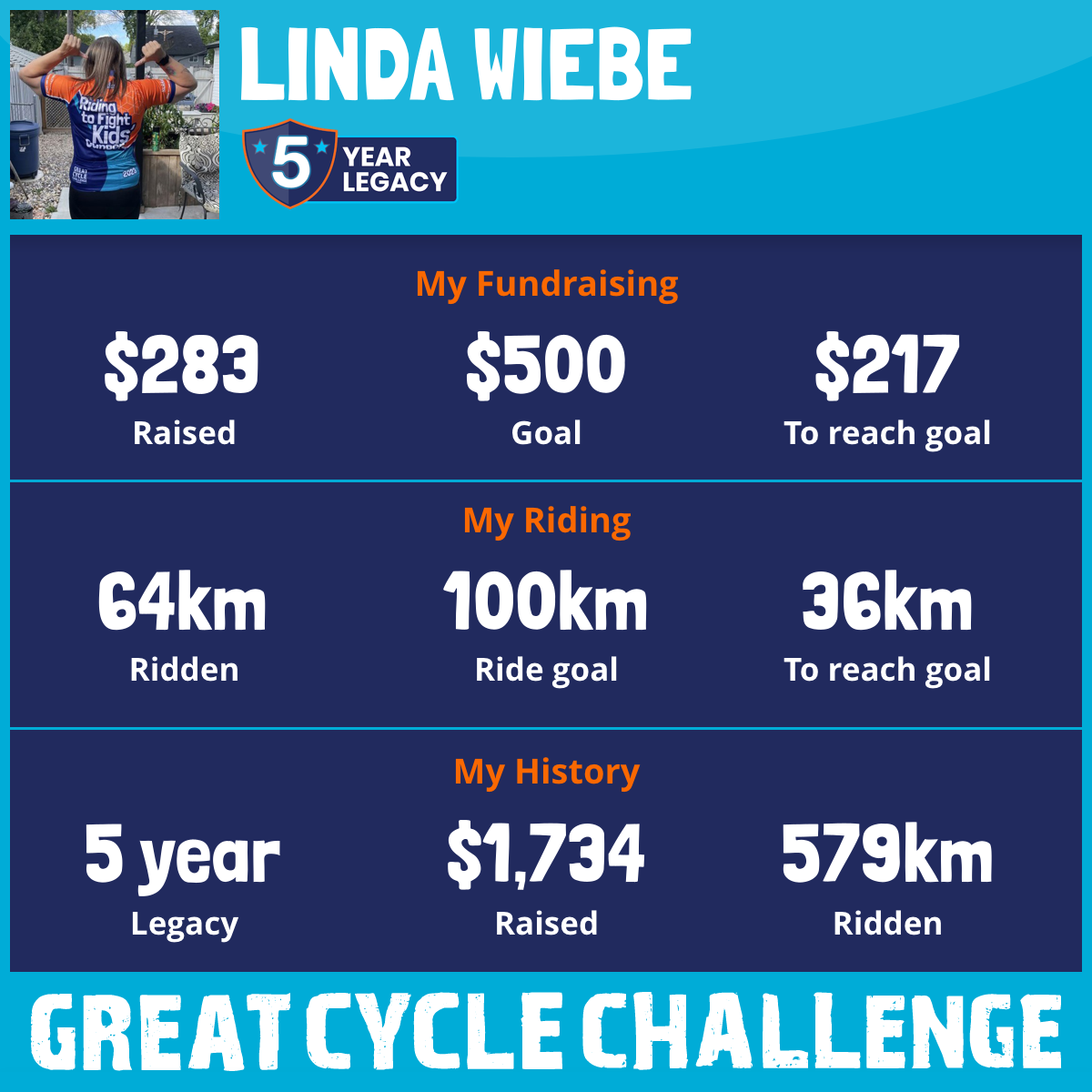 I am riding 100 km in memory of My mom - Darlene Swarbrick ❤️ please help me raise money for kids cancer